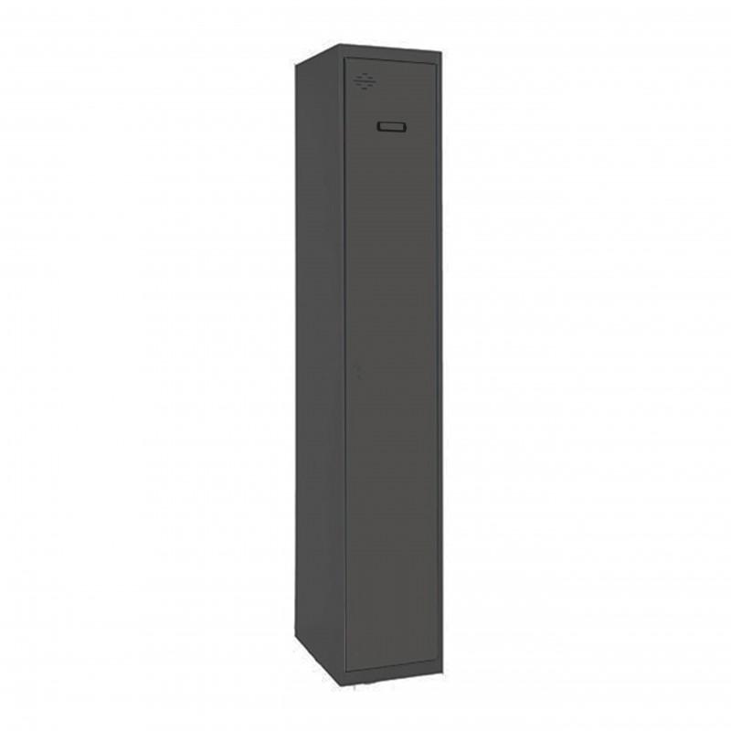 Taquilla metálica de 1 cuerpo con 1 puertas de color ANTRACITA y las puertas blancas. Las dimensiones son 1800x300x500 mms. Se entrega desmontado e incluye un estante, perchero, una cerradura, respiradero y etiquetero para mayor comodidad del usuario. Se monta de forma fácil siguiendo las instrucciones o viendo el vídeo de montaje en Youtube.