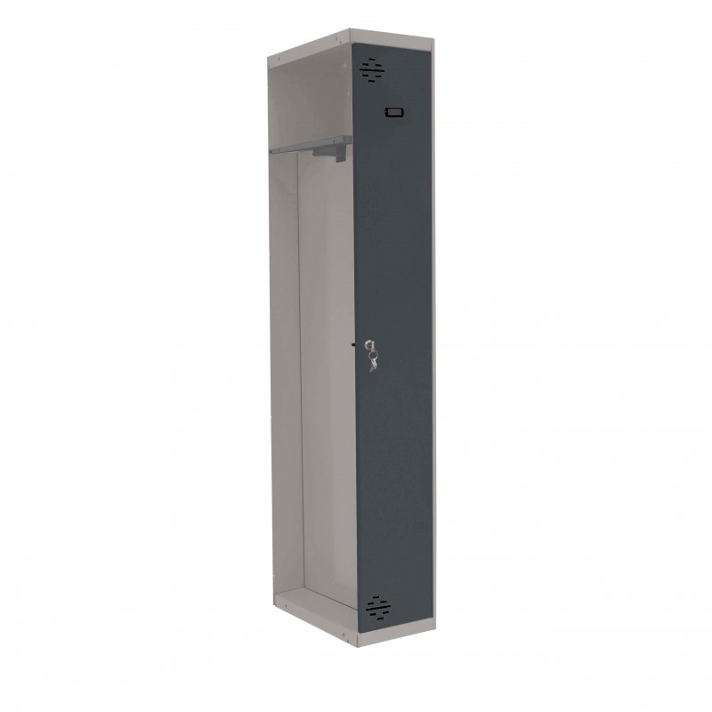 Taquilla metálica de 1 cuerpo con 1 puertas de color gris y las puertas blancas. Las dimensiones son 1800x500x500 mms. Se entrega desmontado e incluye un estante, perchero, una cerradura, respiradero y etiquetero para mayor comodidad del usuario. Se monta de forma fácil siguiendo las instrucciones o viendo el vídeo de montaje en Youtube. Este es un módulo adicional que necesita una inicial al que asociarse.Incluye un separador o divisor interno que sirve para separar el espacio interior.