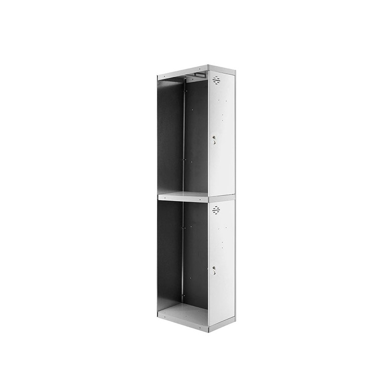 Taquilla metálica de 1 cuerpo con 2 puertas de color gris y las puertas blancas. Las dimensiones son 1800x400x500 mms. Se entrega desmontado e incluye un estante, perchero, una cerradura, respiradero y etiquetero para mayor comodidad del usuario. Se monta de forma fácil siguiendo las instrucciones o viendo el vídeo de montaje en Youtube. Este es un módulo adicional que necesita una inicial al que asociarse.